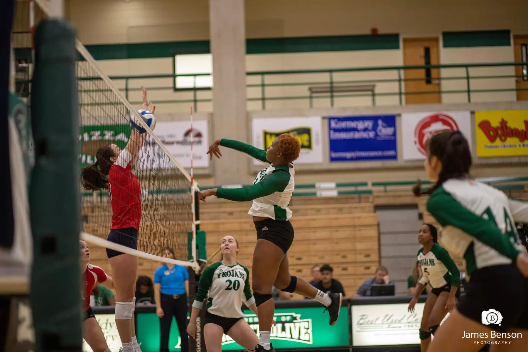 The Trojans were led by Amara Eziakonwa with 22 kills and Ania Keene 20 kills and 15 digs. Starr Sergent added 15 kills and 10 digs while Faith Herman tallied 15 digs as well. Madison Goodman (27) and Nicholle Yeo (26) collected 53 assists of the teams 65 sharing the setting role. Eziakonwa led UMO with four solo blocks on the evening.